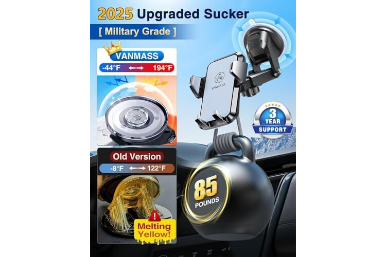 VANMASS ใ85+LBS Strongest Suction & Military-Grade Ultimate Car Phone MountใPatent & Safety Certsใ Cell Phone Holder Truck Stand for Dashboard Windshield Vent for iPhone 16 15 Pro Max 14 Samsung,Gray