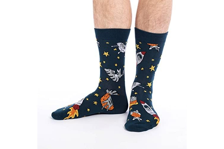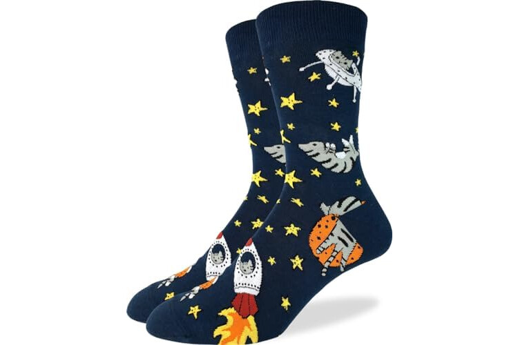 Good Luck Sock Men's Space Cat Socks, Big & Tall, Shoe Size 13-17