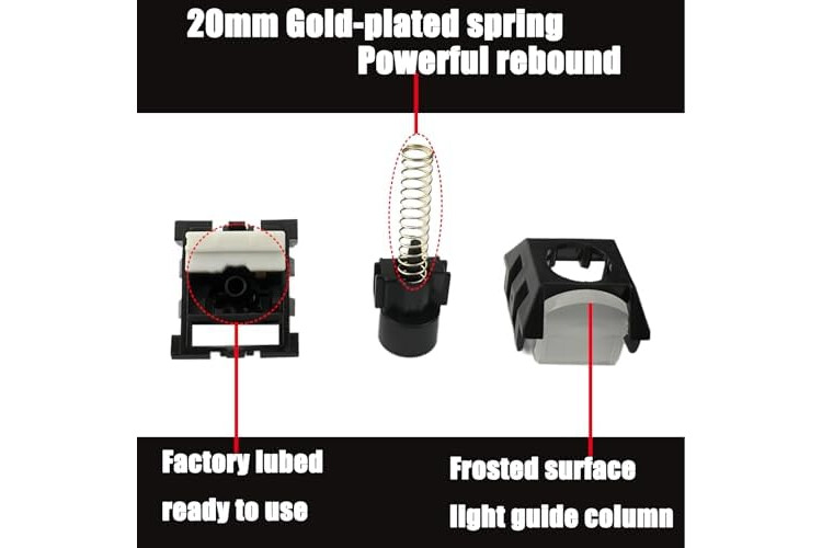 Extended stem with the latest POM material developed by kailh, more wear-resistant, the sound when the core touches the base is more focused