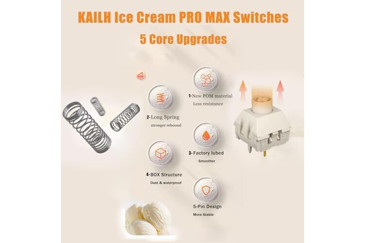 Kailh Box Ice Cream PRO Max,5-Pin Linear Switches,factory lubed and ready to use,long spring,stronger rebound,with smooth and comfortable typing exprience,Good gaming performance.