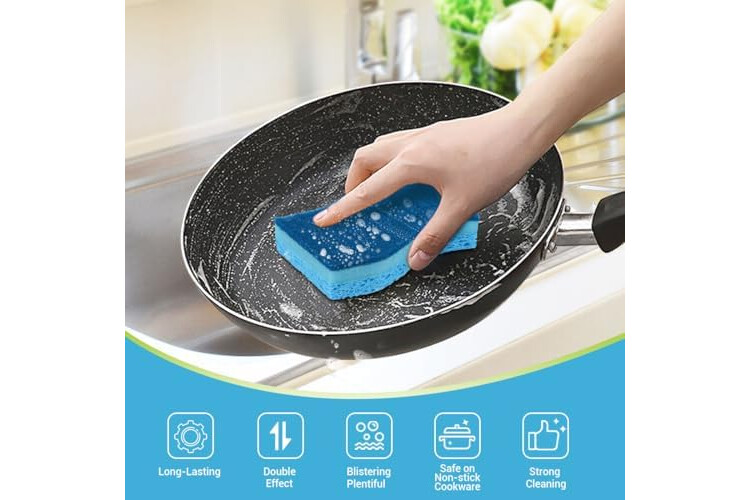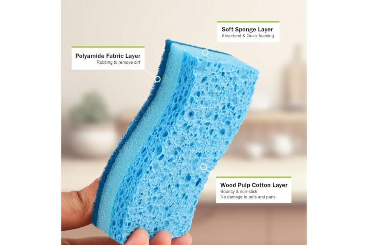 Dishwasher-Safe Sanitization: Made with sustainable materials, AIDEA kitchen sponges rinse clean and dry quickly; prevent unpleasant odors; for extended use, sanitize in your dishwasher
