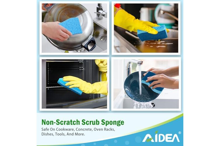 Scratch-Free Cleaning: AIDEA non-scratch sponges ensure safe use on delicate surfaces; their soft material prevents scratches on cookware, glass, and ceramics; effectively clean without risking damage; maintain the integrity and appearance of your kitchen essentials
