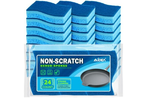 AIDEA Sponges Kitchen, Non-Scratch Scrub Sponge, 24Count, Sponges for Non-Stick Cookware, Kitchen Sponge for Dishes, Cleans Fast Without Scratching, Cleaning Power for Kitchen, Bathroom, Household