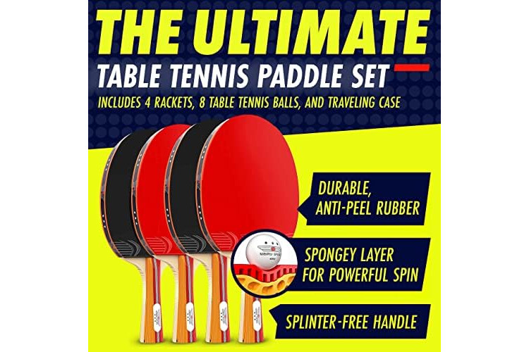 4 PADDLE PROFESSIONAL SET WITH 8 TOURNAMENT QUALITY BALLS - This high-quality ping pong set includes 4 table tennis rackets, eight 3-star ping pong balls, and a convenient, portable carrying case - take them with you wherever you go!