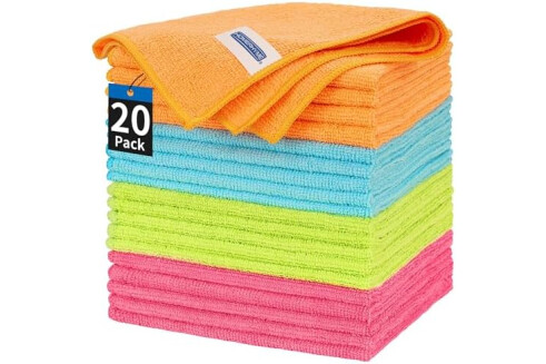 HOMERHYME Microfiber Cleaning Cloth, 20 Pack Cleaning Rags, 12" x 12" Lint Free Shop Towels, Washable Reusable Microfiber Towels for Cars Kitchen Automotive House Office