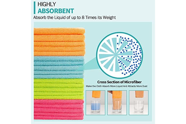 Effectively Drying & Highly Absorbent: Our Cleaning Towel contains about 3,000,000 fibers per square inch. Each towel is thick enough featuring high quality stitching with reinforced edges to absorb the liquid of up to 8 times its weight. They are perfect to absorb wetness and dry wet surfaces.