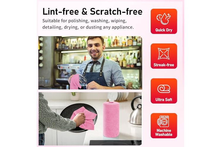SPECIAL TEAR-AWAY DESIGN: These tear-away microfiber towels come in perforated rolls. Each roll includes 75 sheets of towels. You can easily dispense and handle individual sheets for cleaning tasks. They are more eco-friendly than traditional disposable paper towels. They can be used as disposable shop towels | car cleaning rags | kitchen towels | dish cloths for washing dishes | car drying towel | rags for cleaning house | dusting cloths |dish rags.