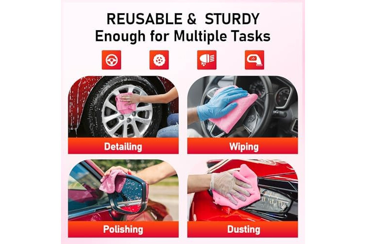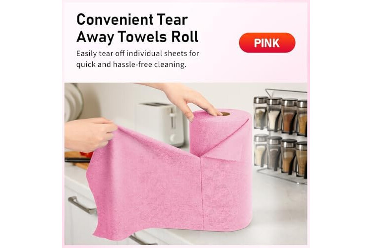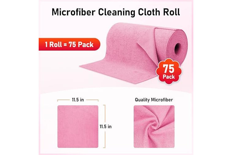 HOMERHYME Microfiber Cleaning Cloth Roll, 75 Pack Tear Away Microfiber Towel, Reusable Washable Shop Towels, Lint Free Cleaning Rags for Car Home Kitchen Garage & Automotive 11.5"x11.5" Pink