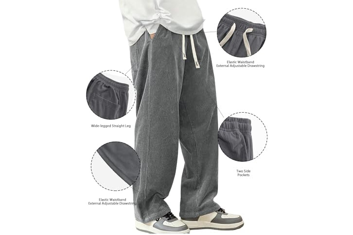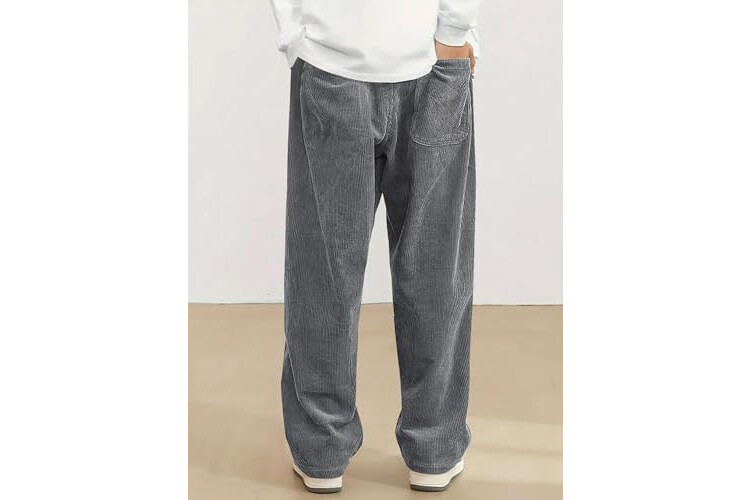 Mens Corduroy Casual Pants Fashion Loose Fit Wide Leg Pants Straight Sweatpants Elastic Waist Drawstring