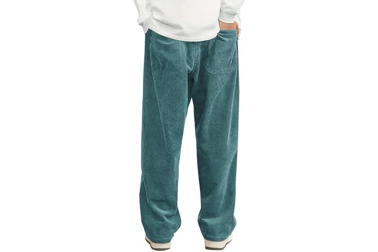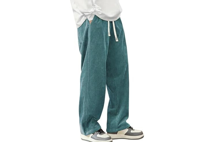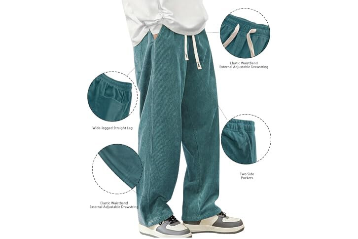 Mens Corduroy Casual Pants Fashion Loose Fit Wide Leg Pants Straight Sweatpants Elastic Waist Drawstring