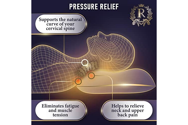 Best spinal alignment – our luxury cervical firm pillow gives greater resistance under the heaviest parts of the head and equally supports the lighter more pressure sensitive neck area. Royal Therapy memory foam pillow helps reduce tossing turning and discomfort. It allows your muscles to relax properly offering natural spinal support to your body adjusting to your unique shape promoting a deep restful sleep.