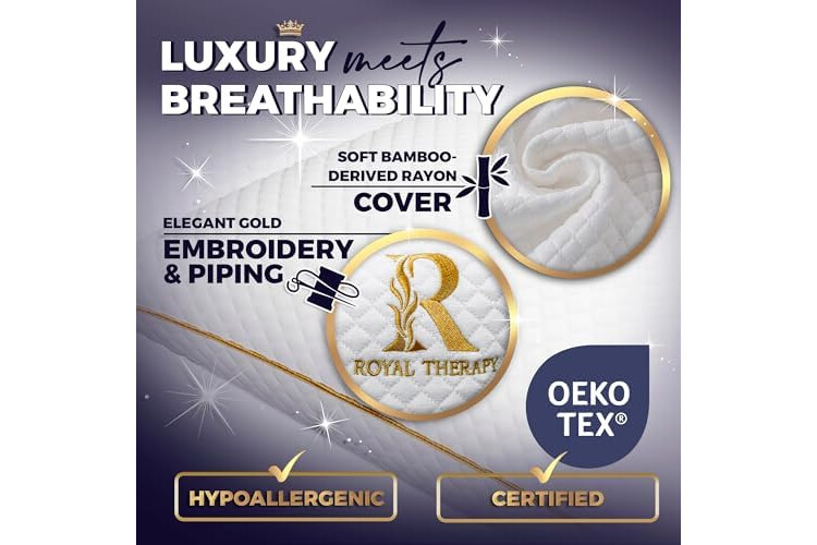 Best spinal alignment – our luxury cervical firm pillow gives greater resistance under the heaviest parts of the head and equally supports the lighter more pressure sensitive neck area. Royal Therapy memory foam pillow helps reduce tossing turning and discomfort. It allows your muscles to relax properly offering natural spinal support to your body adjusting to your unique shape promoting a deep restful sleep.