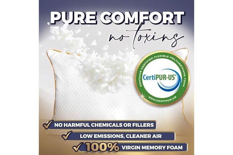 Eliminates pressure points - Royal Therapy largely considered to be the most versatile and comfortable pillows for sleeping you can buy. It's filled with shredded memory foam that gently cradles your head and neck, relieving pressure that often leads to aches and pains. The shape of the contour pillow fills in the gap between your neck and the mattress, keeping your spine in proper alignment while you snooze.