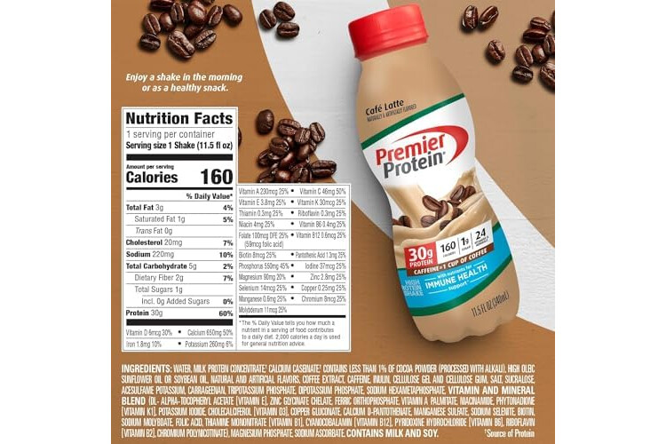 Premier Protein Shake, Café Latte, 30g Protein, 1g Sugar, 24 Vitamins & Minerals, Nutrients to Support Immune Health 11.5 fl oz, 12 Pack