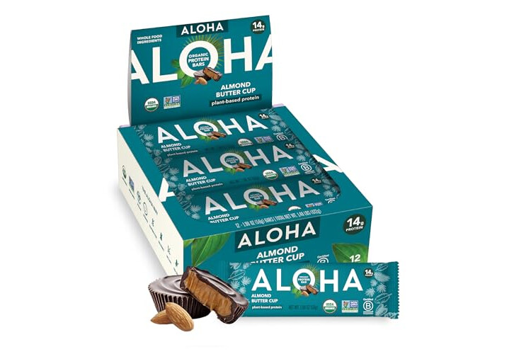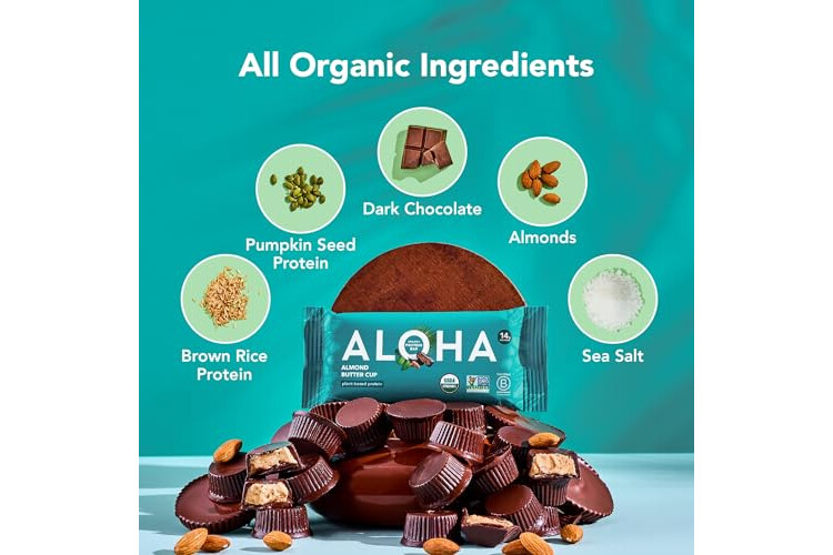 ALOHA Organic Plant Based Protein Bars - Almond Butter Cup - 12 Bars, Vegan, Low Sugar, Gluten-Free, Paleo, Low Carb, Non-GMO, No Stevia, No Erythritol