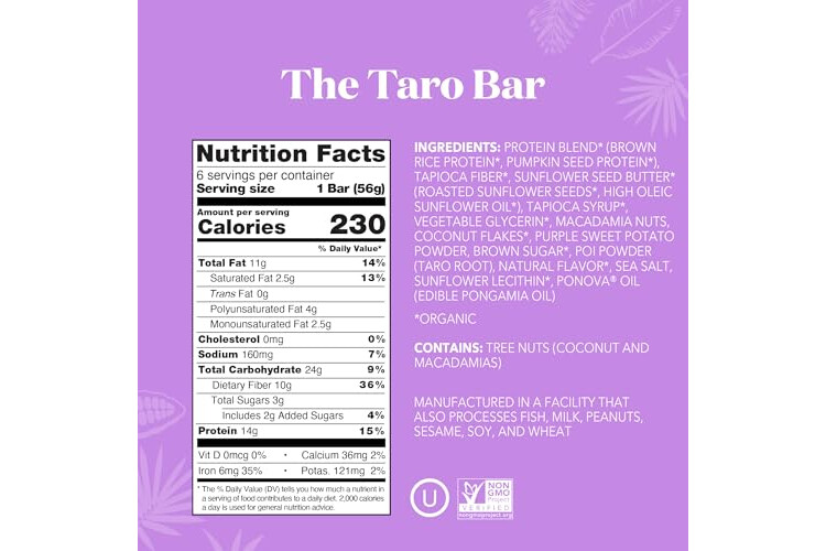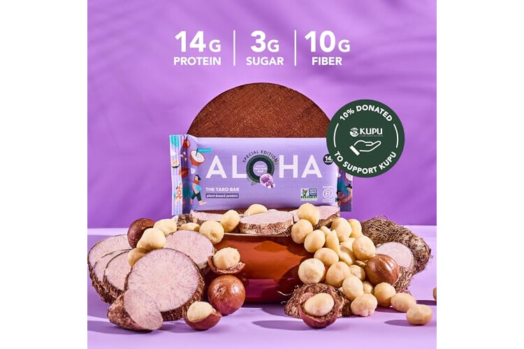 ALOHA Organic Plant Based Protein Bars | The Taro Bar - Special Edition | 6 Count, 1.98oz Bars | Vegan, Low Sugar, Gluten Free, Paleo, Low Carb, Non-GMO, Stevia Free, Soy Free, No Erythritol