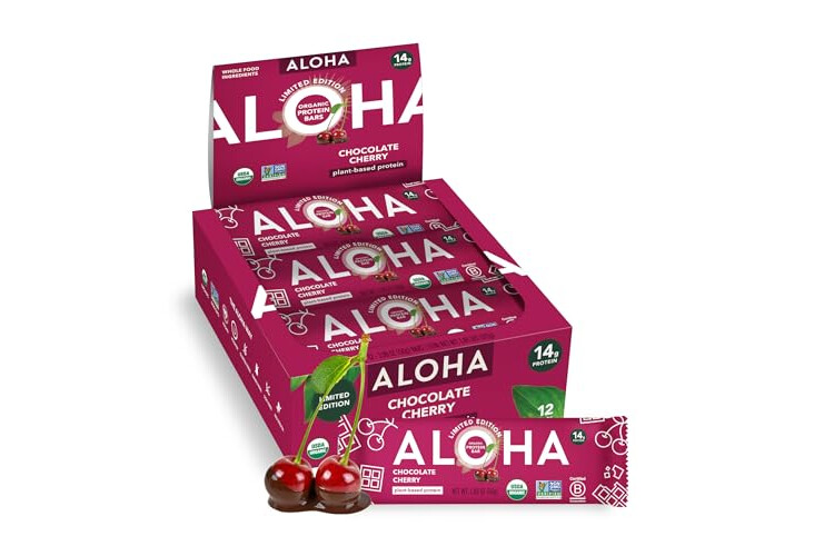 ALOHA Organic Plant Based Protein Bars - Chocolate Cherry - 12 Bars, Vegan, Low Sugar, Gluten-Free, Paleo, Low Carb, Non-GMO, No Stevia, No Erythritol