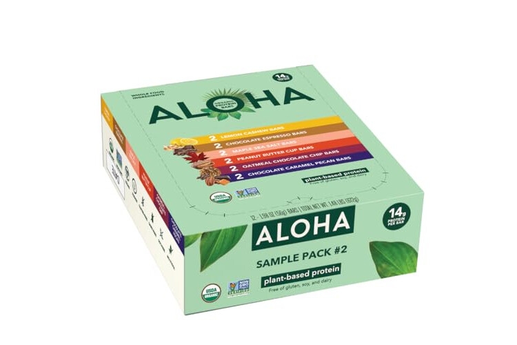 ALOHA Organic Plant Based Protein Bars - Sampler Pack #2-12 Bars, Vegan, Low Sugar, Gluten-Free, Paleo, Low Carb, Non-GMO, No Stevia, No Erythritol