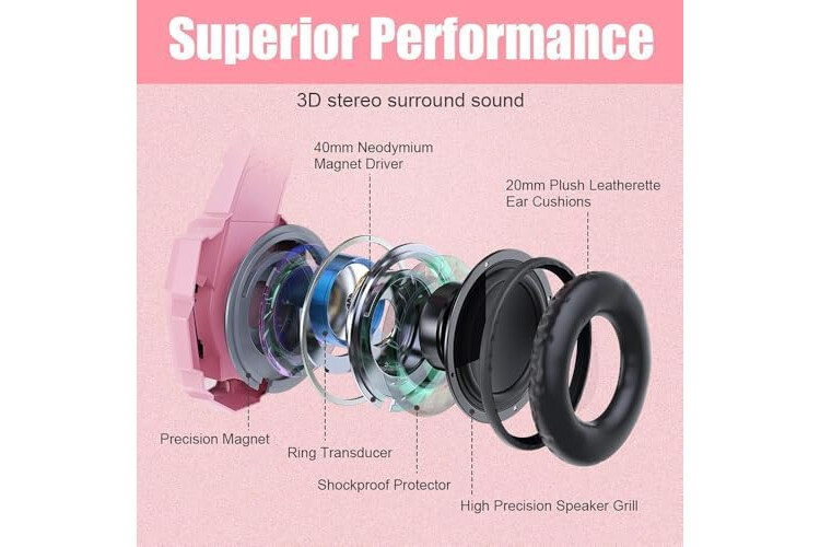 Ergonomic Design - Superior comfortable and good air permeability protein over-ear pads, muti-points headbeam, acord with human body engineering speci...