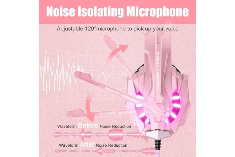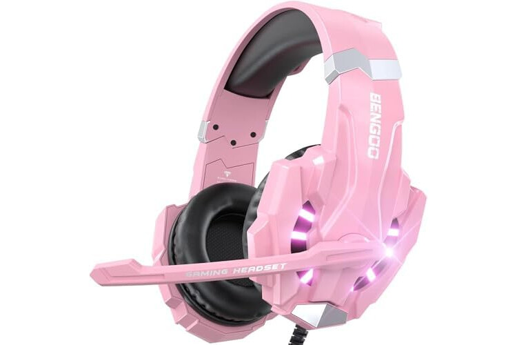 BENGOO G9000 Professional Gaming Headset for PS4, PC, Xbox One Controller, Noise Cancelling Over Ear Headphones with Mic, LED Light, Bass Surround, Soft Memory Earmuffs for Laptop Nintendo - Pink