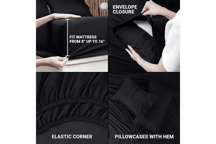 Utopia Bedding King Size Sheet Set - Bulk Pack of 8 Bed Sheets Set - Soft Brushed Microfiber - Deep Pockets - Shrinkage & Fade Resistant - Easy Care (Black)