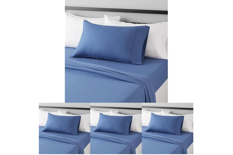 Amazon Basics Lightweight Super Soft Easy Care Wrinkle Free Microfiber 3 Piece Bed Sheet Set with 14-Inch Deep Pockets, Twin, Dutch Blue, Solid, Kids, Men & Women Bedding (Pack of 4)