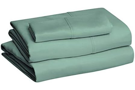 Amazon Basics Lightweight Super Soft Easy Care Wrinkle Free Microfiber 3 Piece Bed Sheet Set with 14-Inch Deep Pockets, Twin, Emerald Green, Solid, Kids, Men & Women Bedding (Pack of 4)