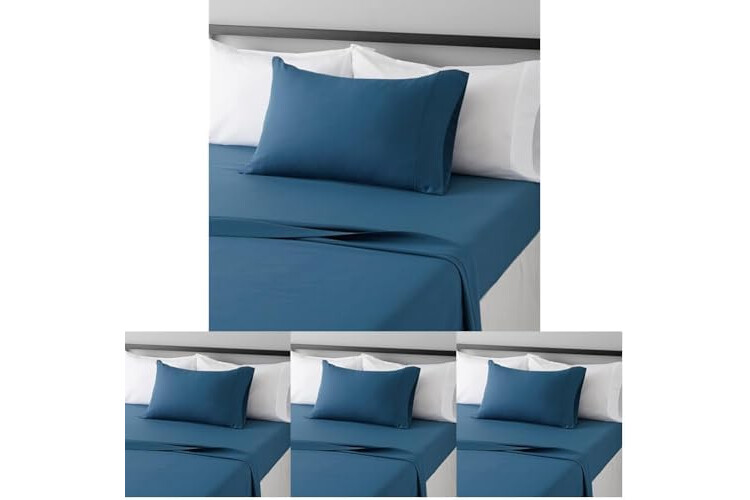 Amazon Basics Lightweight Super Soft Easy Care Wrinkle Free Microfiber 3 Piece Bed Sheet Set with 14-Inch Deep Pockets, Twin, Dark Teal, Solid, Kids, Men & Women Bedding (Pack of 4)