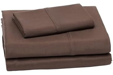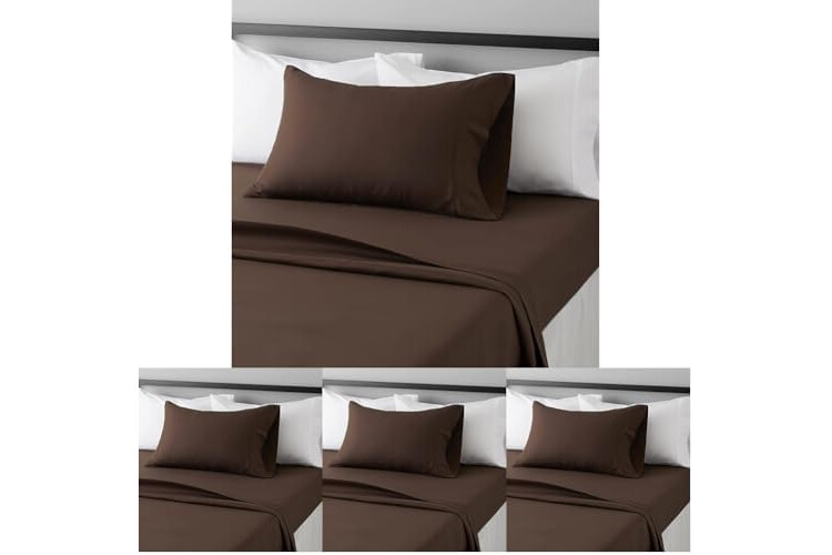Amazon Basics Lightweight Super Soft Easy Care Wrinkle Free Microfiber 3 Piece Bed Sheet Set with 14-Inch Deep Pockets, Twin, Chocolate, Solid, Kids, Men & Women Bedding (Pack of 4)