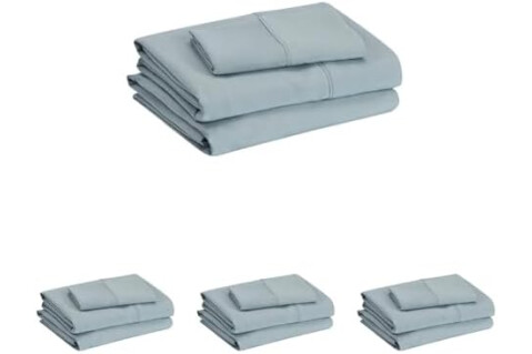 Amazon Basics Lightweight Super Soft Easy Care Microfiber 3 Piece Bed Sheet Set with 14-Inch Deep Pockets, Twin XL, Spa Blue, Solid (Pack of 4)