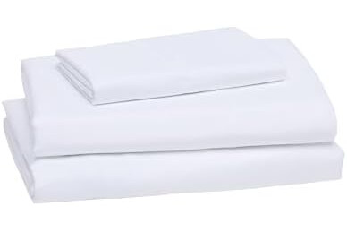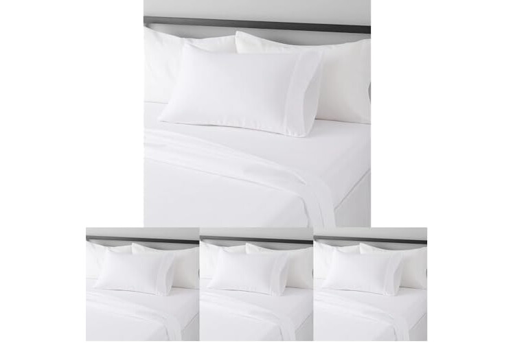 Amazon Basics Lightweight Super Soft Easy Care Wrinkle Free Microfiber 3 Piece Bed Sheet Set with 14-Inch Deep Pockets, Twin, Bright White, Solid, Kids, Men & Women Bedding (Pack of 4)
