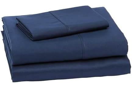 Amazon Basics Lightweight Super Soft Easy Care Wrinkle Free Microfiber 3 Piece Bed Sheet Set with 14-Inch Deep Pockets, Twin, Navy Blue, Solid, Kids, Men & Women Bedding (Pack of 4)