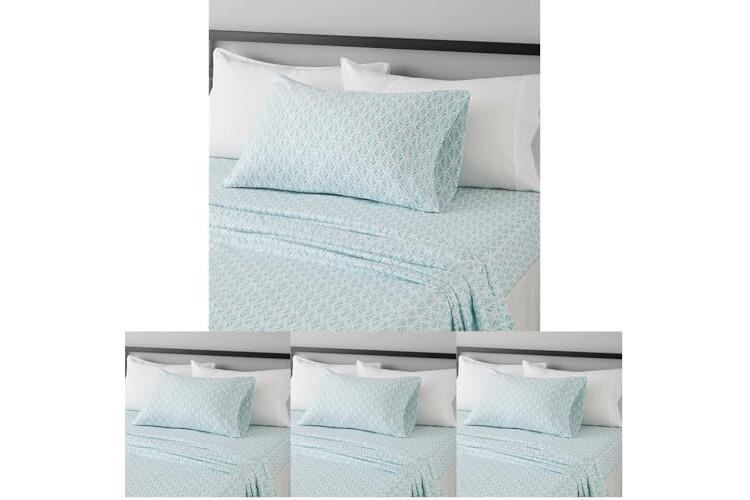 Amazon Basics Lightweight Super Soft Easy Care Wrinkle Free Microfiber 3 Piece Bed Sheet Set with 14-Inch Deep Pockets, Twin, Aqua Fern, Floral, Kids, Men & Women Bedding (Pack of 4)