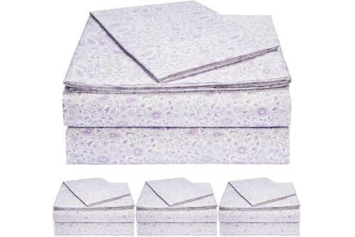 Amazon Basics Lightweight Super Soft Easy Care Microfiber Bed Sheet 3 Piece Set with 14" Deep Pockets - Twin XL, Lavender Paisley (Pack of 4)