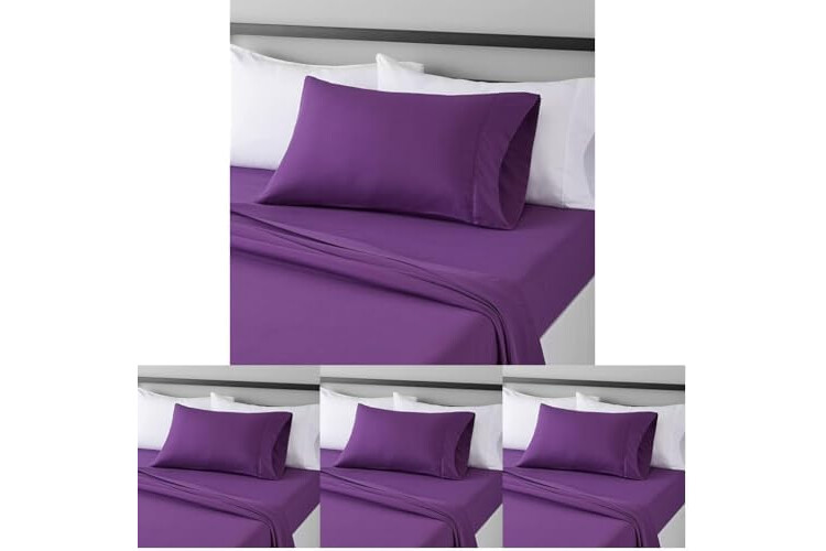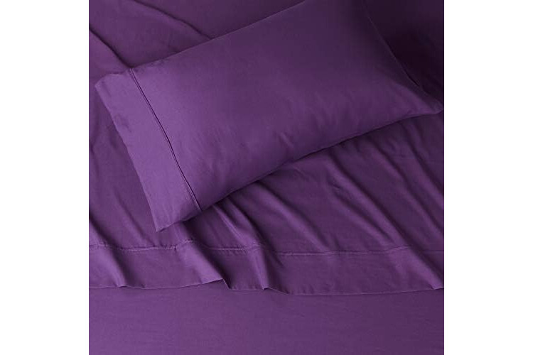 Amazon Basics Lightweight Super Soft Easy Care Microfiber 3 Piece Bed Sheet Set with 14-inch Deep Pockets, Twin X-Large, Plum, Solid (Pack of 4)