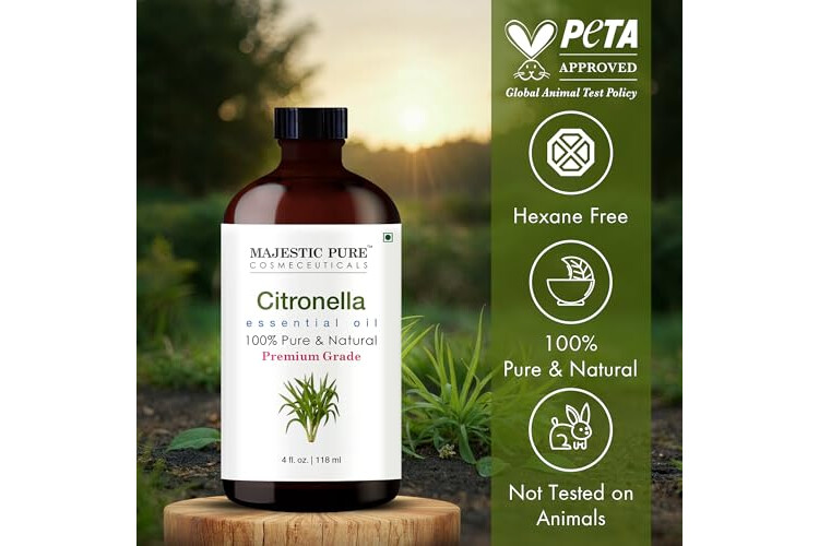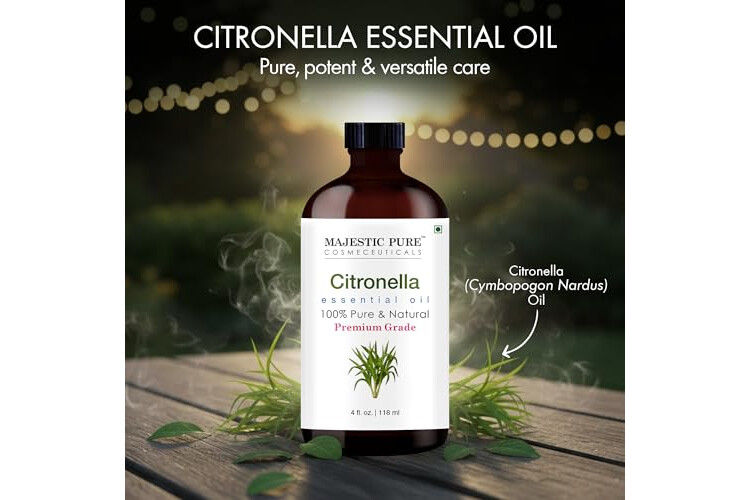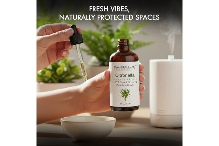 Majestic Pure Essential Oil with Glass Dropper - 100% Pure and Natural - Essential Oils for Diffuser, Aromatherapy, Soap and Candle Making, Citronella Essential Oil, Citronella Oil, 4 Fl Oz