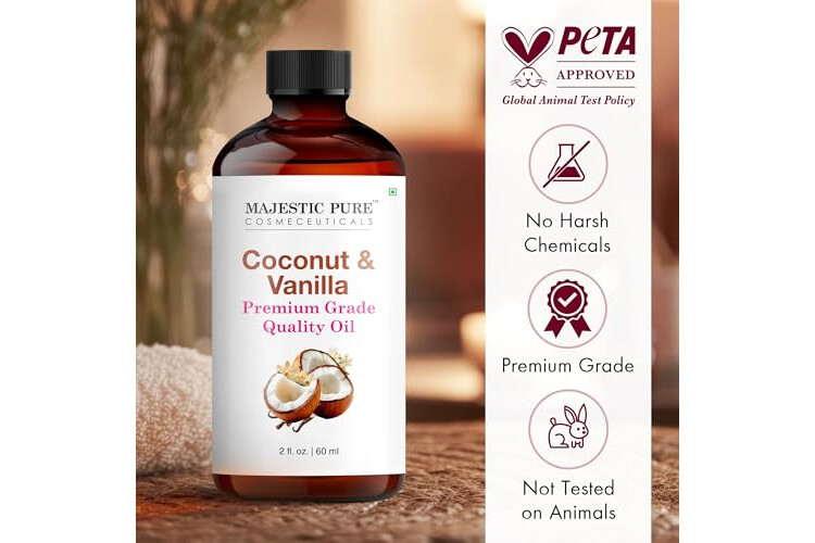 Majestic Pure Essential Oil with Glass Dropper - 100% Pure and Natural - Essential Oils for Diffuser, Aromatherapy, Soap and Candle Making, Coconut Vanilla Essential Oil, Coconut Vanilla Oil, 2 Fl Oz