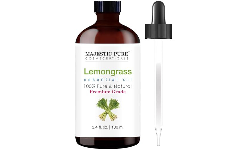 Majestic Pure Essential Oil with Glass Dropper - 100% Pure and Natural - Essential Oils for Diffuser, Aromatherapy, Soap and Candle Making, Lemongrass Essential Oil, Lemongrass Oil, 3.4 Fl Oz