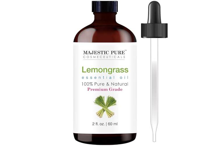 Majestic Pure Essential Oil with Glass Dropper - 100% Pure and Natural - Essential Oils for Diffuser, Aromatherapy, Soap and Candle Making, Lemongrass Essential Oil, Lemongrass Oil, 2 Fl Oz