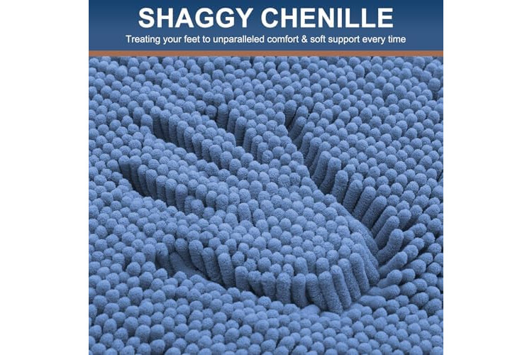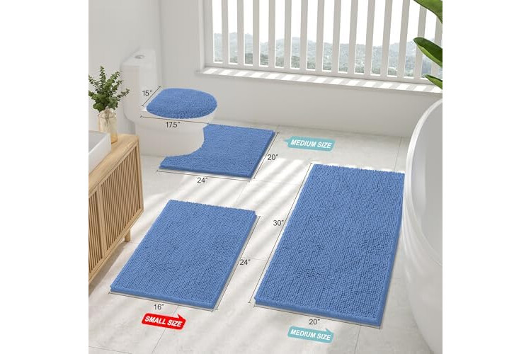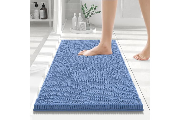 Smiry Luxury Chenille Bathroom Rugs 24x16, Extra Soft and Absorbent Shaggy Bath Mat, Machine Washable, Non-Slip Plush Carpet Runner for Tub, Shower, and Floor, Home Decor Accessories, Cornflower Blue