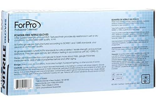 ForPro Disposable Nitrile Gloves, Chemical Resistant, Powder-Free, Latex-Free, Non-Sterile, Food Safe, 4 Mil