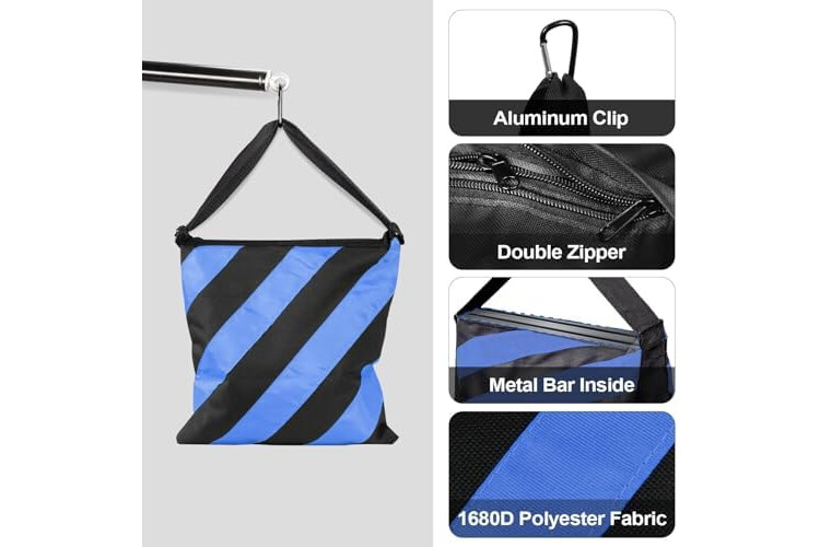 The sand bags for weight feels softer and each sandbag has double zippers and a kind of rubber lining to keep the sand or dust from escaping. Useful with boom arms, light stands, tripod, etc (NOTE: Sandbag is empty, do not contain any material)