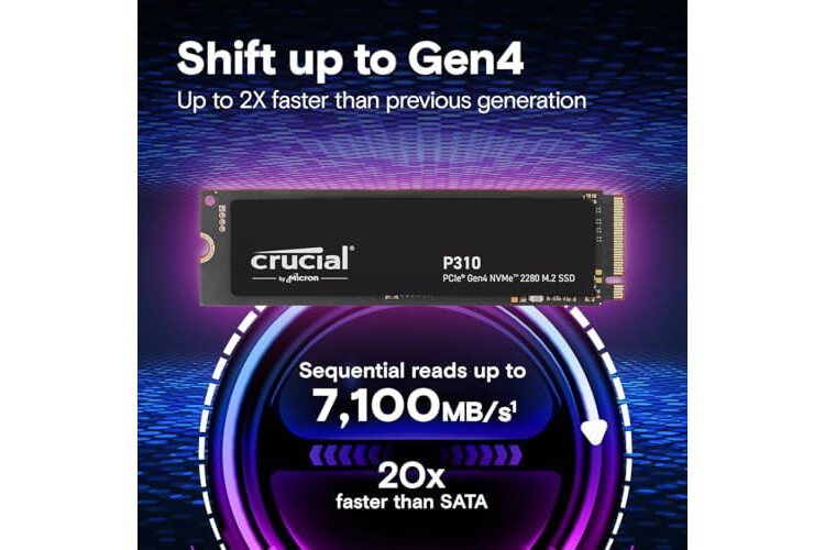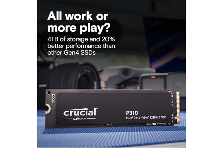 Crucial P310 4TB SSD, PCIe Gen4 NVMe M.2 2280, Up to 7,100MB/s, for Laptop, Desktop (PC), & Handheld Gaming Consoles, Includes Acronis Data Recovery Software, Solid State Drive - CT4000P310SSD801