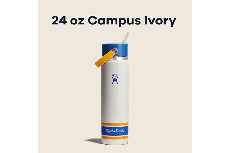 Hydro Flask Water Bottle - Insulated Stainless Steel - Wide Mouth Flex Straw Lid, Non Spill, Leakproof and Refillable in 24 Oz Campus Ivory