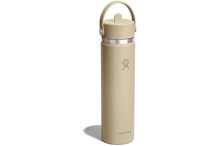 24 OZ OAT TAN BOTTLE: Flip it and sip it with the Hydro Flask Wide Mouth insulated water bottle with closeable straw cap. With a comfortable, flexible handle, the leakproof straw cap is easy to open and close with one hand. Double-wall insulation keeps drinks cold up to 24 hours.