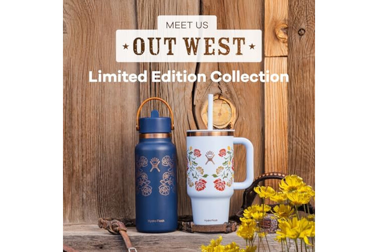 OUT WEST: With a nod to leather tooling and botanicals found out West, the Out West collection brings a hint of western wear and ranch style to cold hydration. Featuring rose gold accents and floral designs on Hydro Flask’s iconic bottles and tumblers. The straps give a cool nod to saddle adornment.