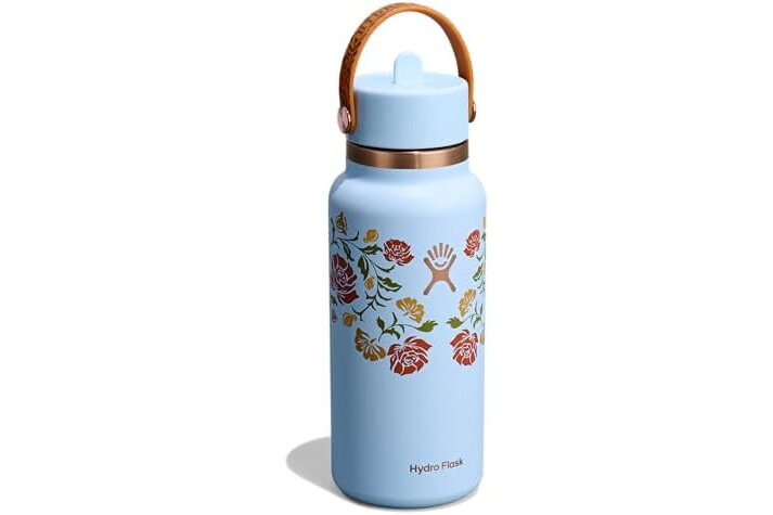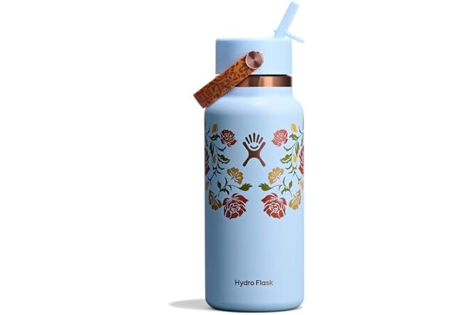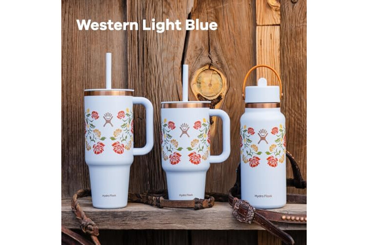 32 OZ WESTERN LIGHT BLUE BOTTLE: Flip it and sip it with the Hydro Flask Wide Mouth insulated water bottle with closeable straw cap. With a comfortable, flexible handle, the leakproof straw cap is easy to open and close. Double-wall insulation keeps drinks cold up to 24 hours.