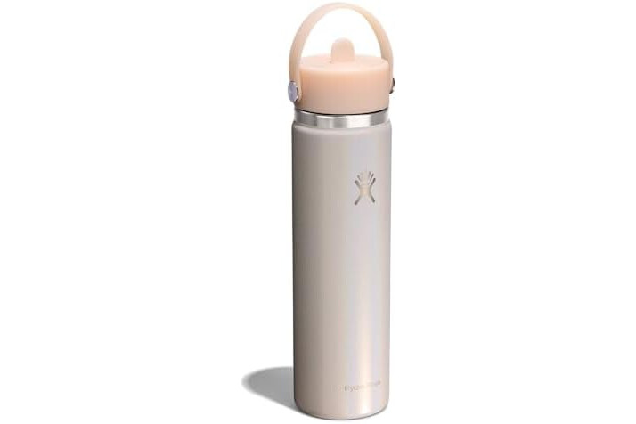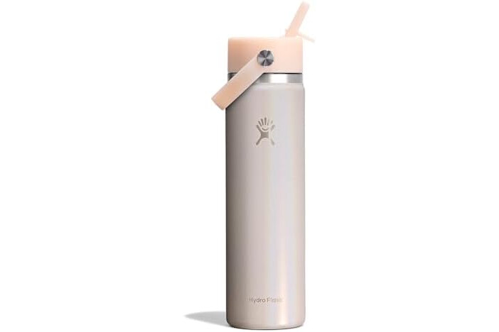 24 OZ GLIMMER CREAM BOTTLE: Flip it and sip it with the Hydro Flask Wide Mouth insulated water bottle with closeable straw cap. With a comfortable, flexible handle, the leakproof straw cap is easy to open and close with one hand. Double-wall insulation keeps drinks cold up to 24 hours.
