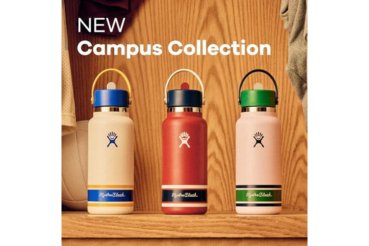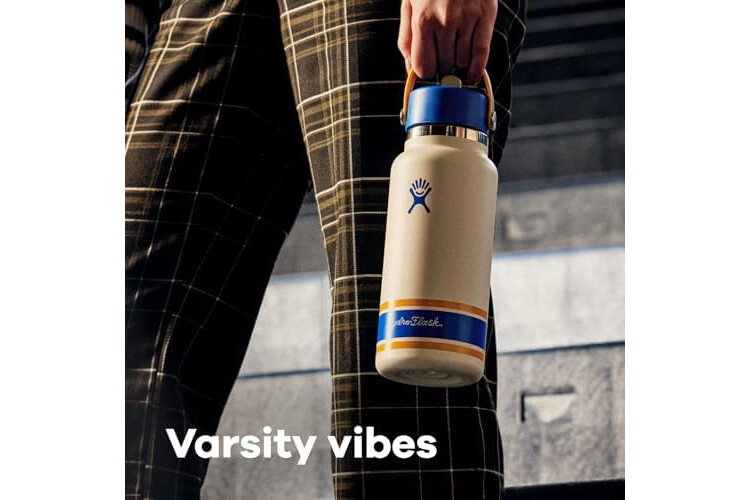 Hydro Flask Water Bottle - Insulated Stainless Steel - Wide Mouth Flex Straw Lid, Non Spill, Leakproof and Refillable in 32 Oz Campus Ivory