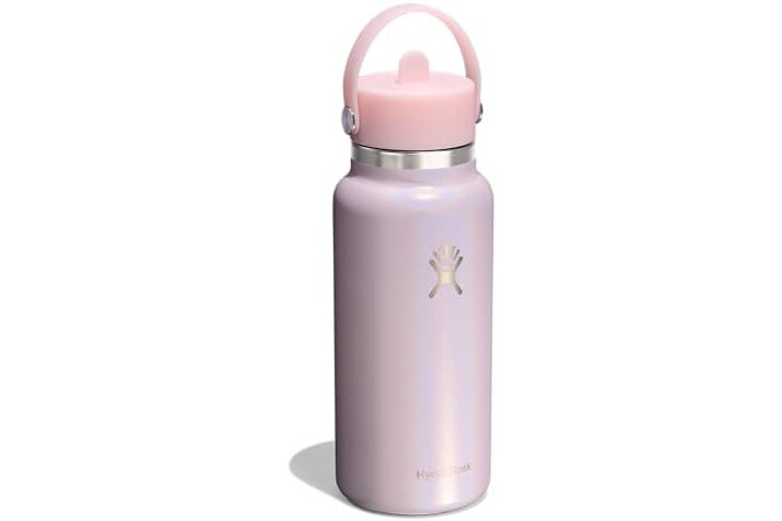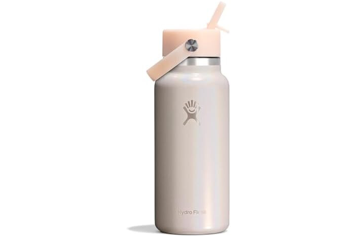 32 OZ GLIMMER CREAM BOTTLE: Flip it and sip it with the Hydro Flask Wide Mouth insulated water bottle with closeable straw cap. With a comfortable, flexible handle, the leakproof straw cap is easy to open and close. Double-wall insulation keeps drinks cold up to 24 hours.
